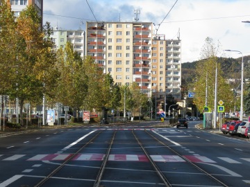 • úsek trate od budovy krajského súdu po kruhový objazd Moldavská,
