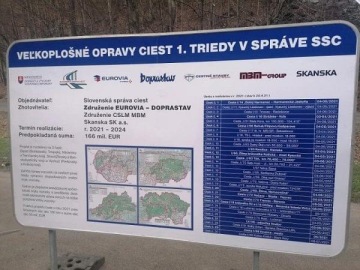 Združenie EUROVIA – Doprastav, ktoré ako jeden zo zhotoviteľov realizuje práce na projekte Veľkoplošné opravy ciest 1. triedy v správe Slovenskej správy ciest (SSC), od apríla obnovilo 20 úsekov ciest po celom Slovensku za viac ako 20 miliónov EUR. V rámci projektu už združenie zrekonštruovalo viac ako 78 km ciest, 667-tisíc m² povrchu vozoviek a použilo vyše 151-tisíc ton asfaltu. Stavebné práce budú pokračovať až do roku 2024.