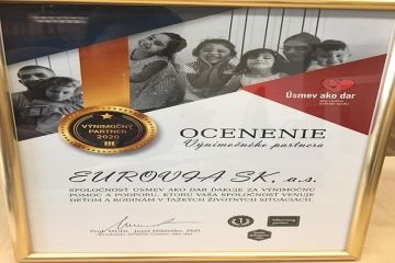 Občianske združenie Úsmev ako dar ocenili spoločnosť EUROVIA SK, a.s. za výnimočnú pomoc a podporu, ktorú naša spoločnosť venuje deťom a rodinám v ťažkých životných situáciách.